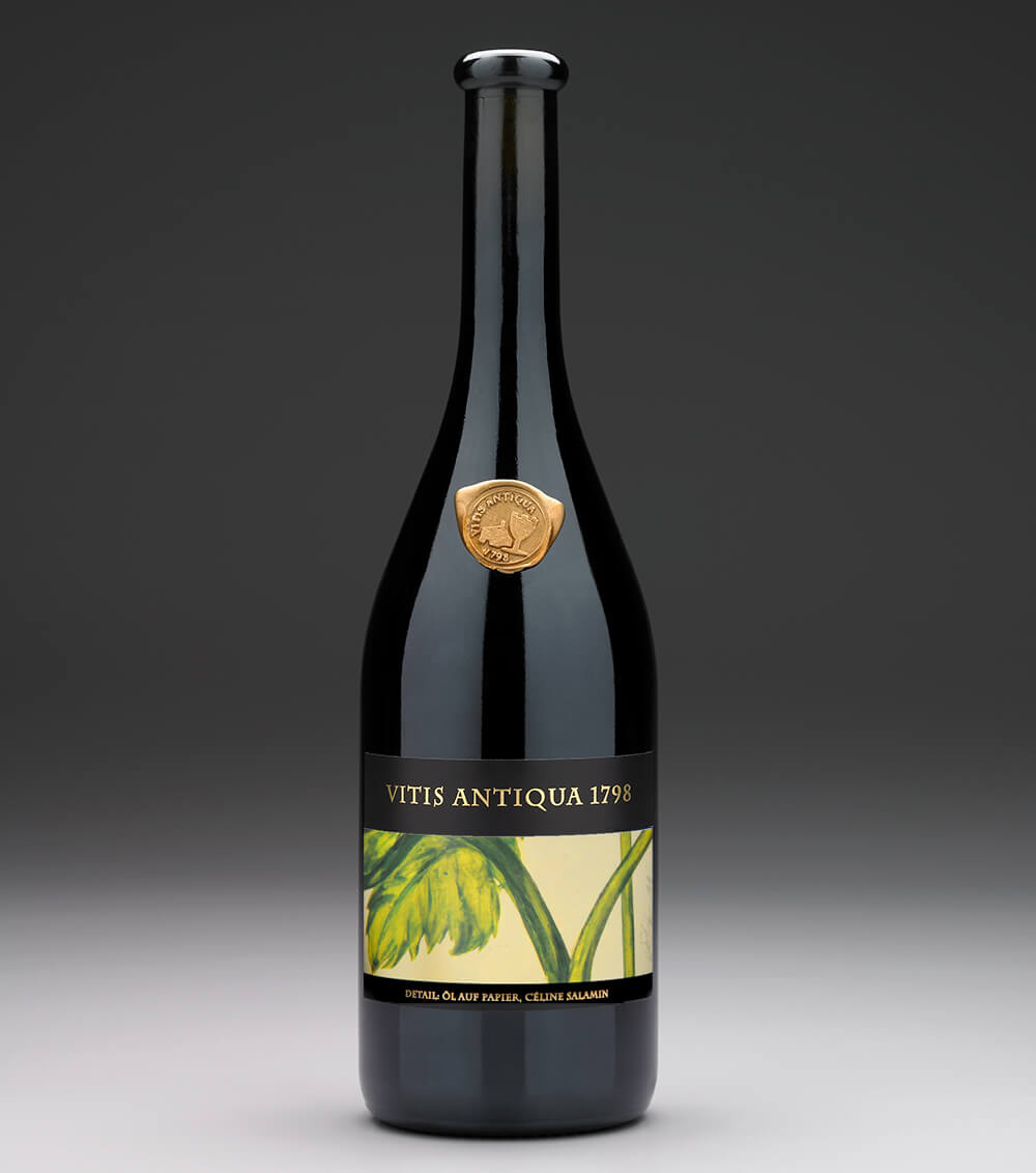 Der Cornalin Vitis Antiqua 1798 präsentiert sich in fast majestätisch anmutender, tiefroter, dunkler Robe. Violette Reflexe verraten den Cornalin ebenso wie das reiche Bukett, das an schwarze Kirschen, Weichseln und exotische Gewürze erinnert. Aussergewöhnlich ist seine Dichte, die sich im Gaumen in verschwenderischer Fülle ausbreitet, getragen von edlen, feinen Tanninen und einer angenehmen Frische – ein Wein, in dem sich Geschichte und eine lange Tradition mit dem Können der modernen Weinmacher vermählen.